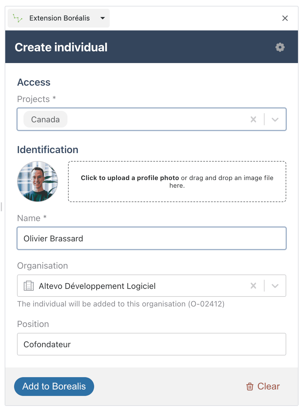 In a collaborative effort with the Boréalis team, we've developed an ingenious Chrome extension designed to automate manual tasks when creating individuals.