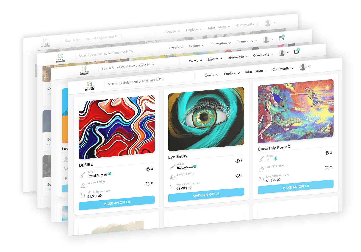 Sur PRISM, chacun est invité à acheter et à vendre ses créations numériques, qu'il s'agisse de musique, de photographies, de sculptures 3D, de clips, de documents historiques ou d'articles de mode. PRISM inspire la prochaine génération de créateurs et permet aux artistes contemporains de s'épanouir dans un environnement ouvert et inclusif.