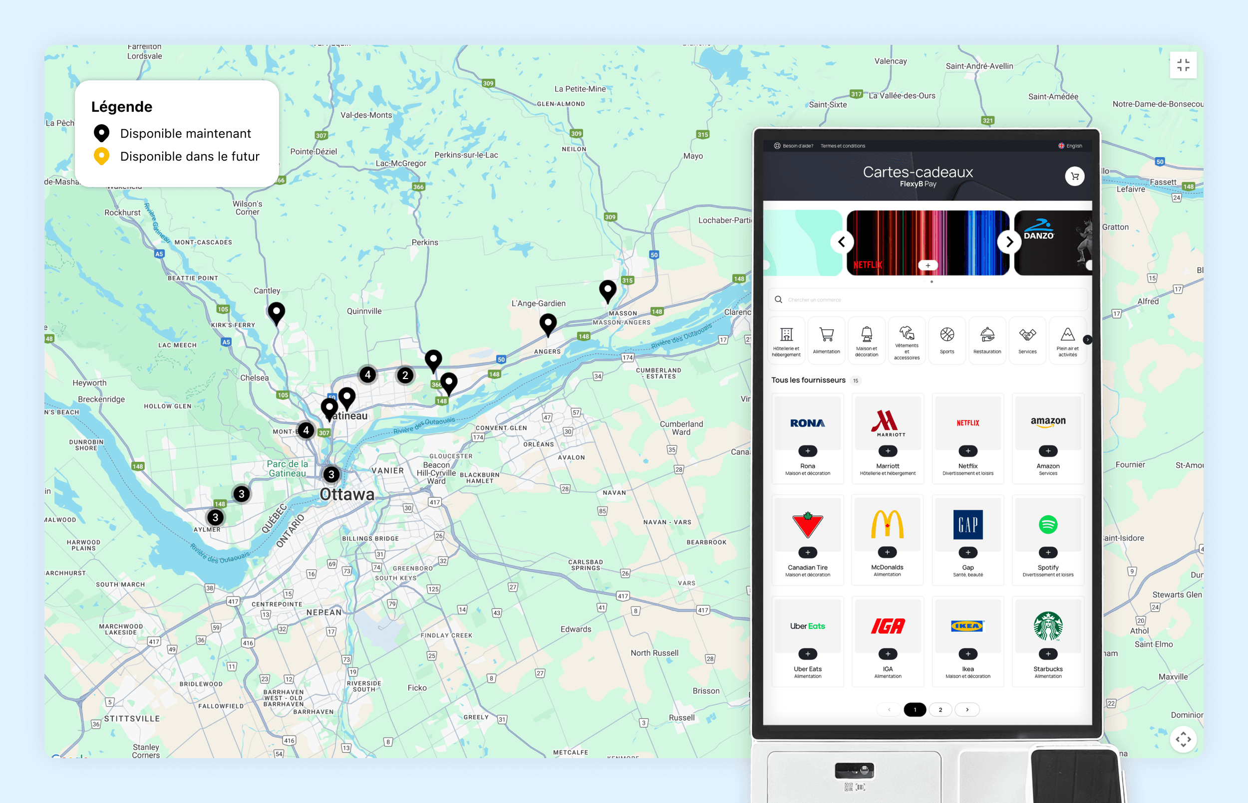 FlexyB Solutions est une entreprise innovante qui propose un écosystème complet autour des cartes-cadeaux numériques : un réseau de bornes tactiles pour les acheter en magasin, une application mobile pour les retrouver facilement, ainsi qu’un système de gestion et d’activation des codes compatible avec les terminaux de vente existants. Leur objectif : moderniser et simplifier l’expérience des cartes-cadeaux, autant pour les commerçants que pour les consommateurs.