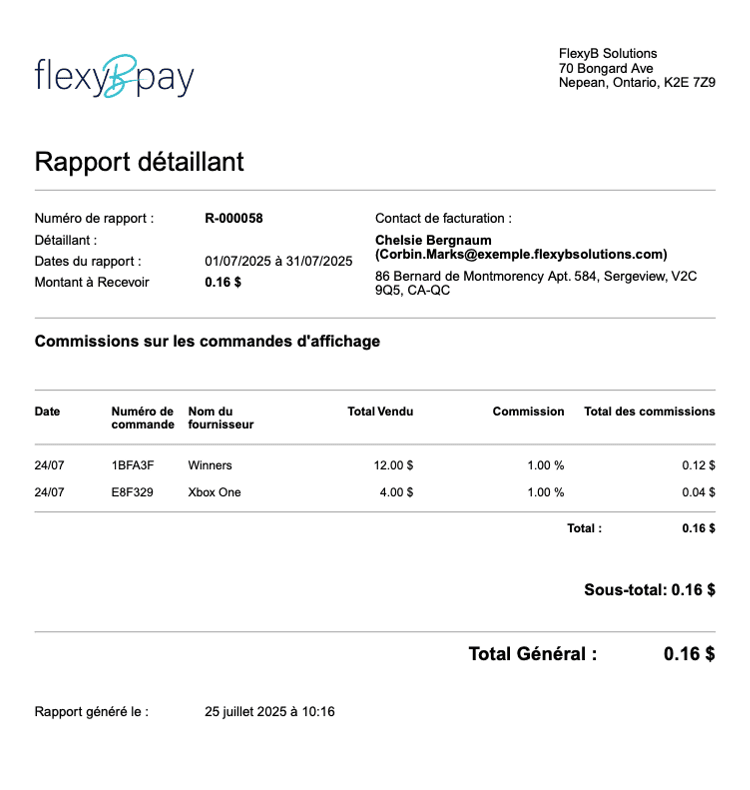 Les rapports détaillés sont générés automatiquement et mis à disposition des fournisseurs pour qu’ils puissent évaluer l’impact de leurs campagnes et ajuster leur stratégie en temps réel. Des rapports spécifiques sont également produits pour les administrateurs de la plateforme et l’équipe de comptabilité, afin de faciliter le suivi global et la gestion financière.